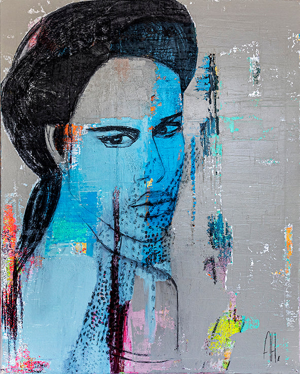 Plexibond Dibond with Plexiglass. Dibond consists of 3 layers. The outer two layers are made of aluminum, the core is made of polyethylene: a black type of plastic, total thickness 3 mm. Above this glass clear glued plexiglass, 1 side printed in full color with opaque white, thickness 3 mm. The artwork as a whole has a thickness of 6mm. The back of the artwork is equipped with an aluminum suspension profile. The artwork has a floating effect because it hangs 2 cm from the wall, so that the hanging system provides extra stability. Plexibond artworks are limited to 10 pieces and are supplied with the original certificate signed by me. Delivery time 5-14 working days